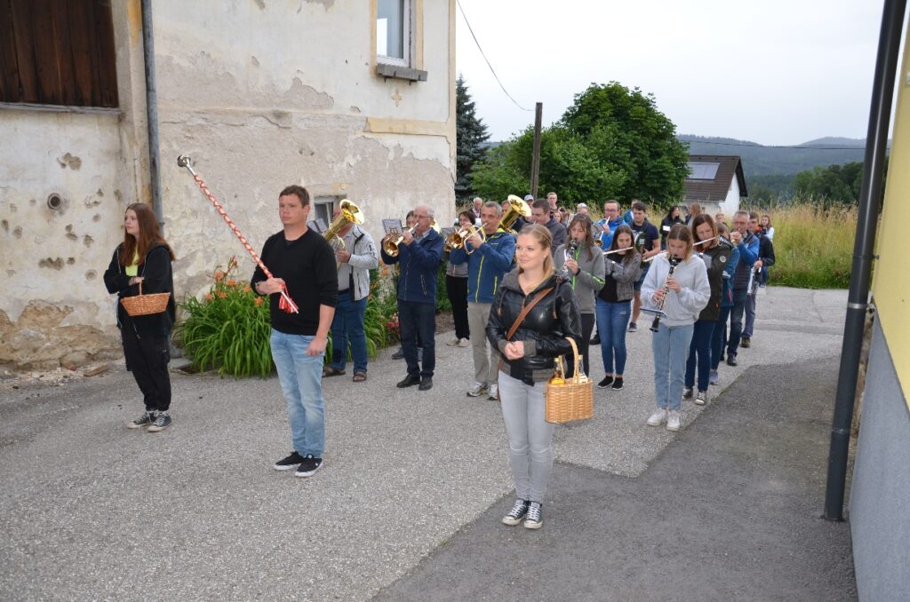 Am Samstag, 9. Juli 2022, durften wir beim Poltern von Sara und Manfred Mühleder dabei sein. Mit dem „Schwiebogen“, dieser wird durch die unverheirateten jungen Zulisser/innen gebunden, begleiteten wir das Aufstellen musikalisch. Ein kleiner Regenschauer überraschte uns jedoch und somit durften wir gleich in den Elmeckerhof zum großen Poltern abmarschieren. Dort feierten wir mit dem Brautpaar bis in die frühen Morgenstunden.