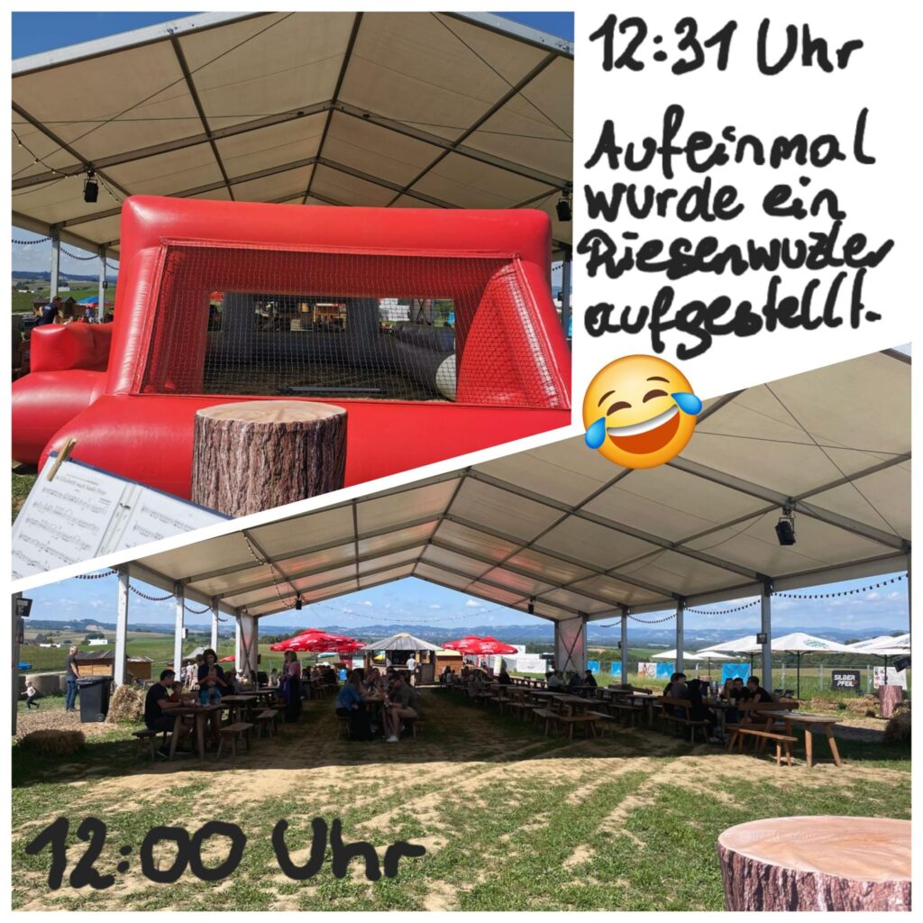Eine lustige Anekdote gab es auch. Da es ein Riesenwuzzlerturnier gab, wurde kurzerhand das Gerät direkt vor unserer Bühne aufgebaut. Da es für uns unmöglich war an diesem vorbei zu spielen, entschloss der Fanclub mit vereinten Kräften das Gerät zur Seite zu räumen und wir konnten den Frühschoppen wie geplant fortsetzen. 😍