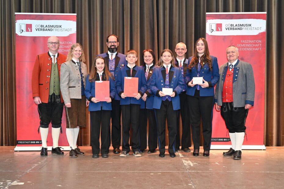 Wirklich stolz können wir alle sein! Gleich 2x Gold und 2x Bronze bekam heute der MV Zulissen!! Elisa und Jonas legten im letzten Jahr, obwohl sie so jung sind, schon ihre Übertrittsprüfung in Bronze ab. Und Eleonor und Katharina schließlich (und auch echt jung!!) sogar ihre Goldene!! Dazu braucht es wirklich viel Ausdauer, Motivation und Fleiß!! Danke euch allen, dass ihr euch der Prüfung gestellt habt! Mit solchen Sternchen hebt man das musikalische Niveau sehr! Kathi spielte mit ihrem Ensemble Los Tenoros heute bei der Verleihung, richtig schöne Tenorhornklänge!!Danach beim Frühschoppen beim Poissl feierten wir mit viel Süßem noch etwas weiter…