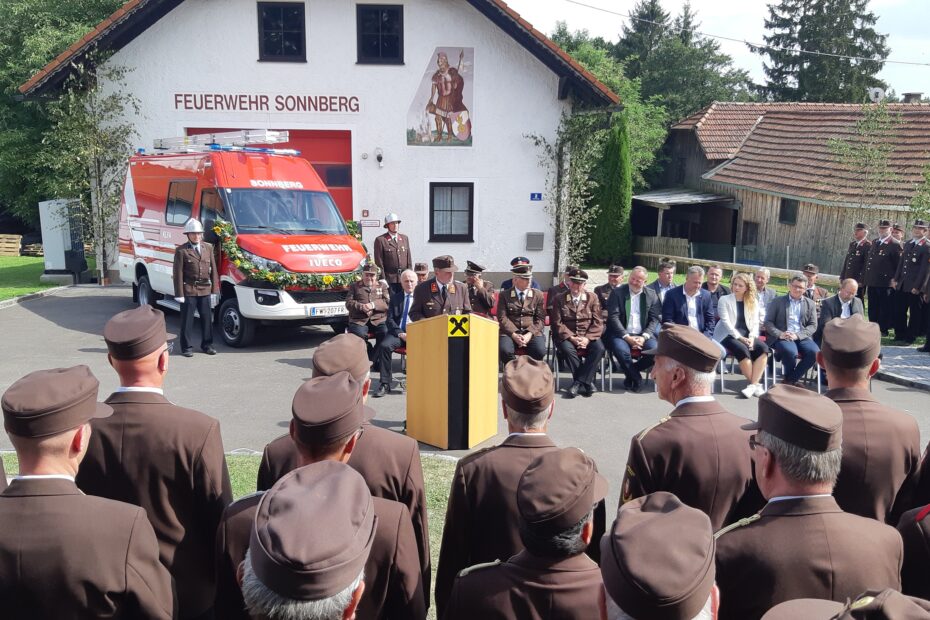 Die FF Sonnberg hat ein neues Feuerwehrfahrzeug bekommen. Gemeinsam mit der Feuerwehrmusik Windhaag bei Freistadt umrahmten wir die Segnung musikalisch.Nach der Segnung hat die FF Sonnberg die Musikerinnen und Musiker auf Essen und Getränke eingeladen. Vor allem die Getränke kamen bei der Hitze mehr als gelegen. Wir wünschen der Feuerwehr Sonnberg viel Freude mit dem Fahrzeug und hoffen, dass es nicht allzu oft gebraucht wird.